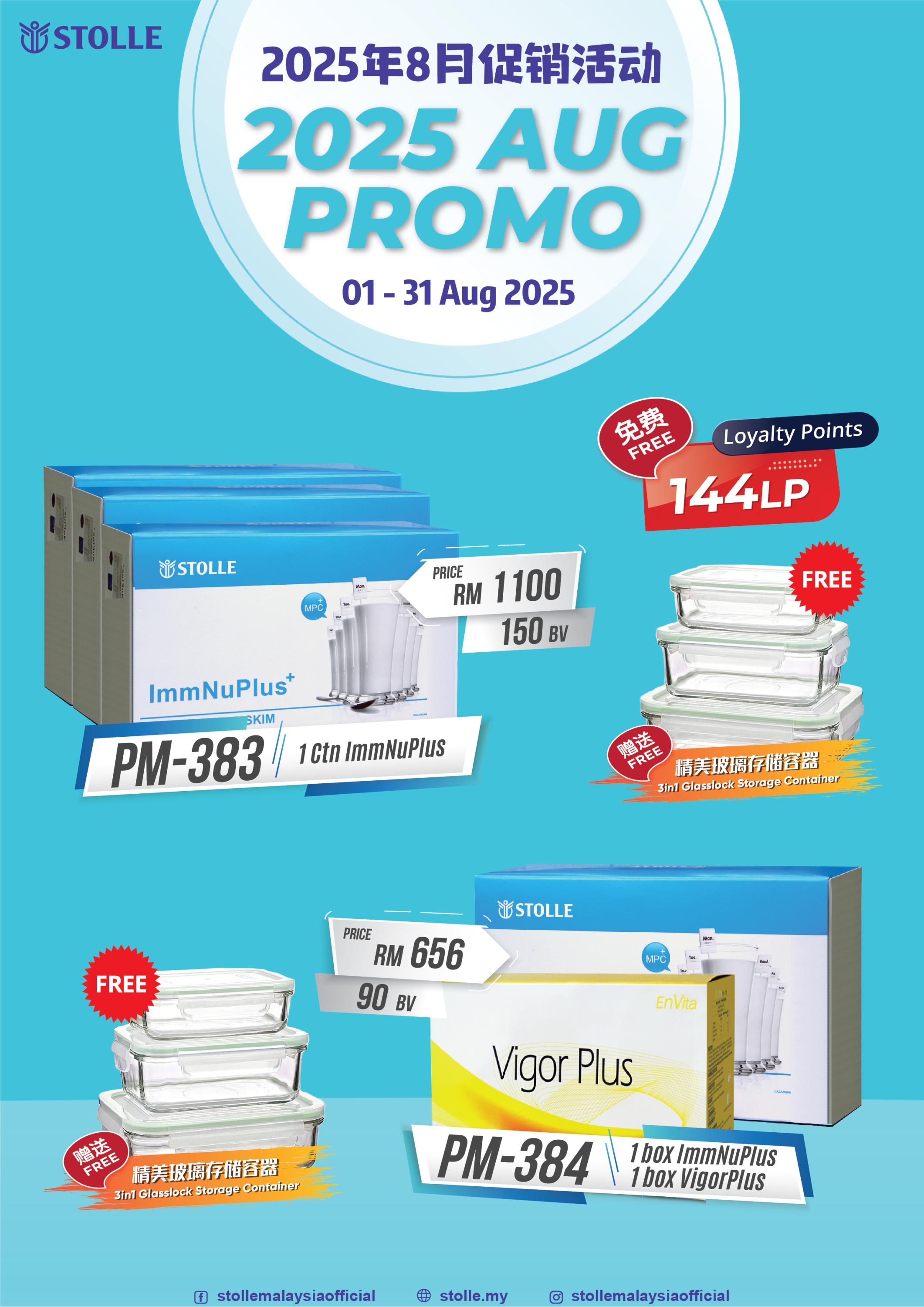 凡购买【PM-383 @ 1箱赐多利免疫乳】或【PM-384 @ 赐多利免疫乳(1盒)+可久利活力饮(1盒)】,赐多利公司就会送出3合1精美玻璃存储容器,它耐热、多用途、附盖,并兼具美观和实用性,绝对是厨房必备好帮手!还有,配套PM-383还附送多达144消费积分呢!