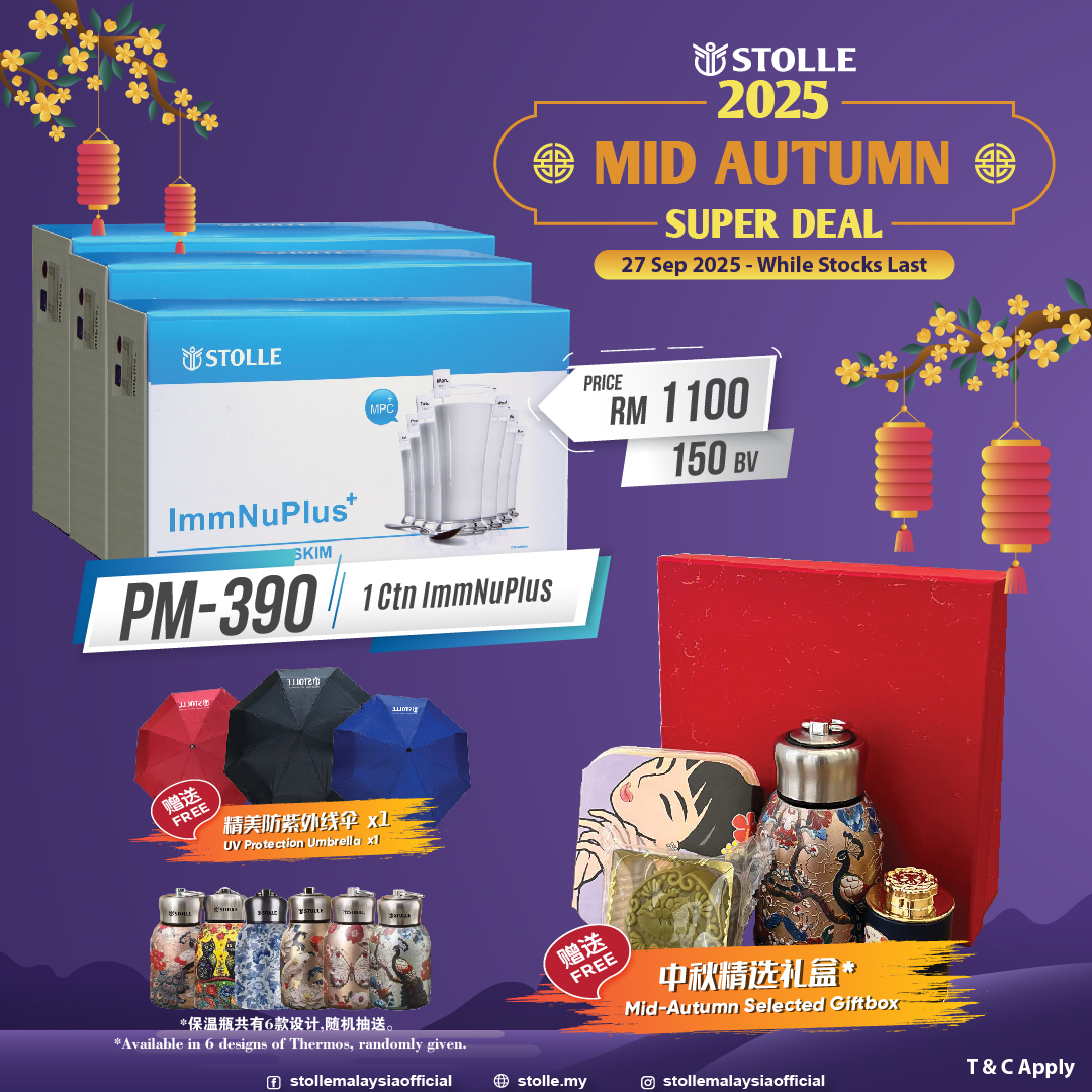 - PM-390 @ 1 ctn of ImmNuPlus FREE Limited-Edition Mid-Autumn Selected Giftbox + UV-Protection Umbrella