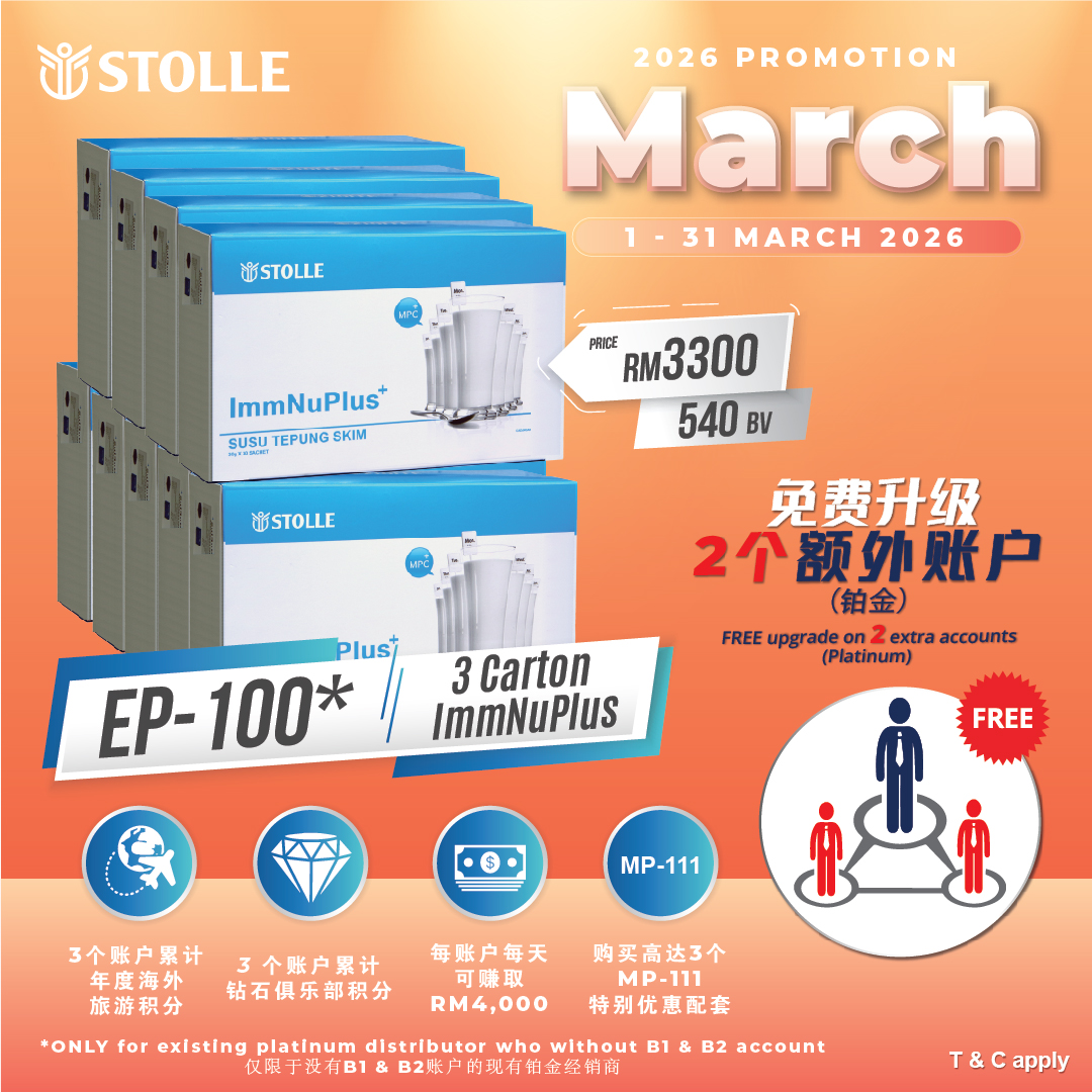 - EP-100→3 ctns of ImmNuPlus + FREE upgrade on 2 extra accounts to Platinum